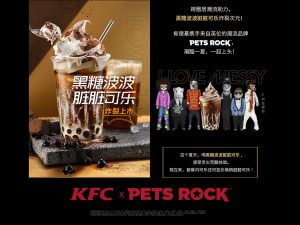 | China’s leading quick service restaurant brand, KFC, have partnered with Pets Rock to promote their ‘Messy Cola’ drinks launch. Tapped by advertising agency Normcore, Pets Rock characters will feature in a major campaign, launching with a series of online marketing activities and themed restaurants to bring Pets Rock joy across the country this summer.